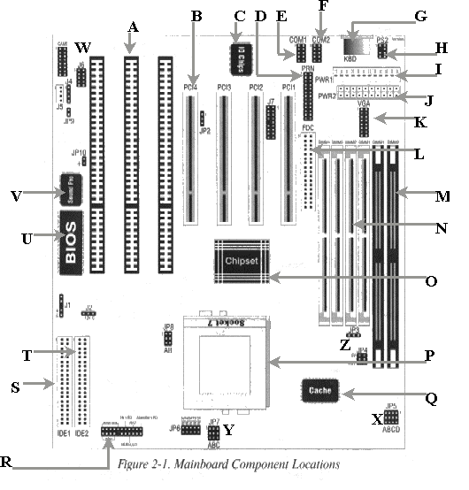 21. M refers to two long dark slots. What important component(s) do these slots house and why do these components have so many pins?